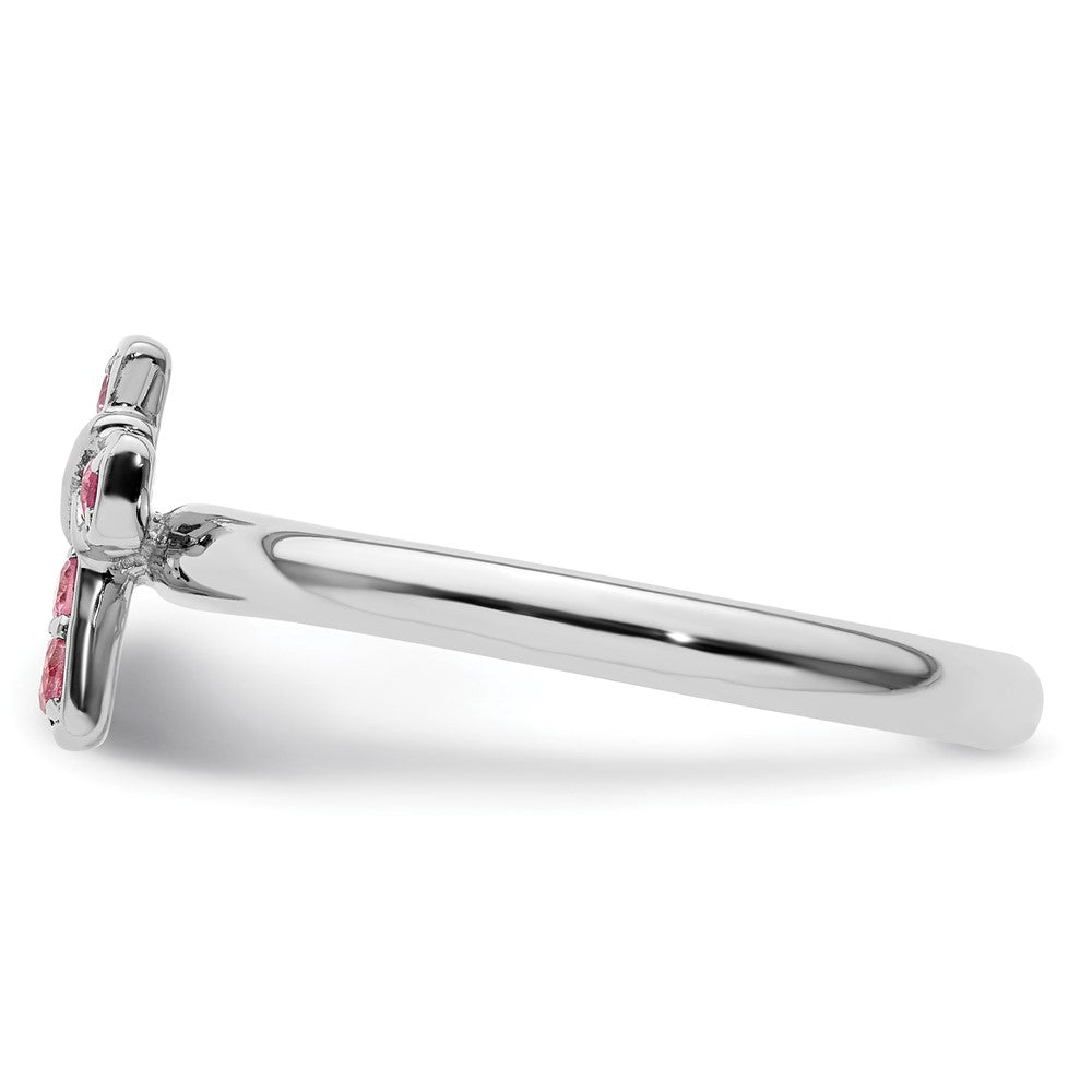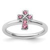 Sterling Silver Stackable Expressions Rhodium Pink Tourmaline Cross Ring