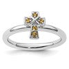 Sterling Silver Stackable Expressions Rhodium Citrine Cross Ring