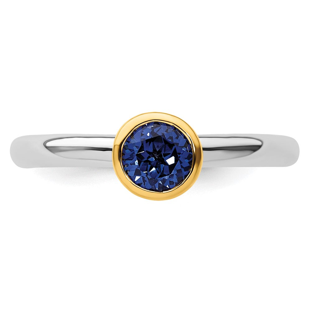 Sterling Silver Stackable Expressions w/Gold-plated Cr. Sapphire Ring