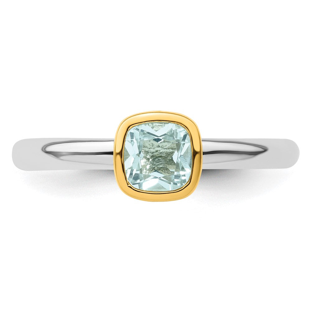 Sterling Silver Stackable Expressions w/Gold-plate Aquamarine Ring