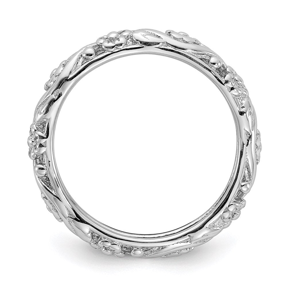 Sterling Silver Stackable Expressions Rhodium Floral Ring