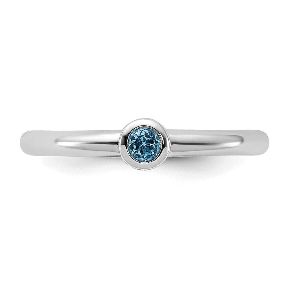 Sterling Silver Stackable Expressions Rhodium-plated Light Swiss Blue Topaz Ring