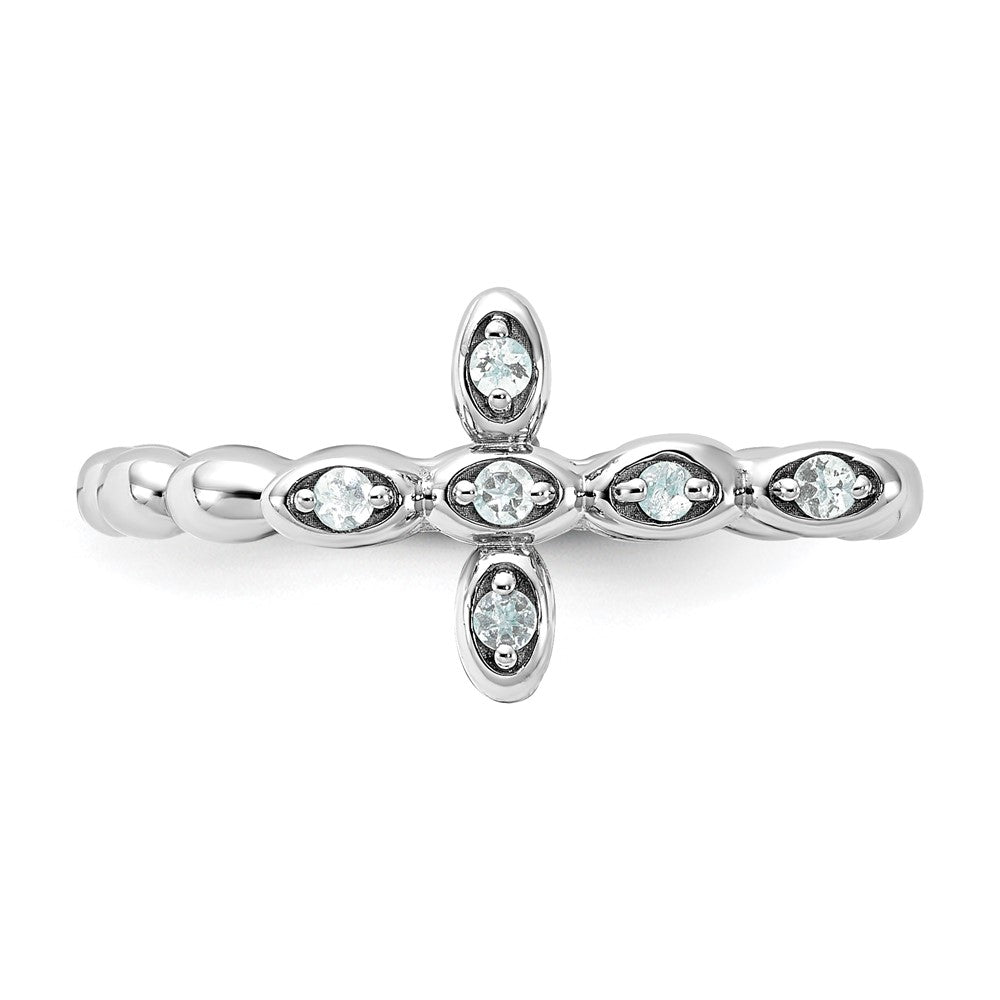 Sterling Silver Stackable Expressions Rhodium-plated Aquamarine Cross Ring