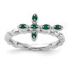 Sterling Silver Stackable Expressions Rhodium-plated Created Emerald Cross Ring