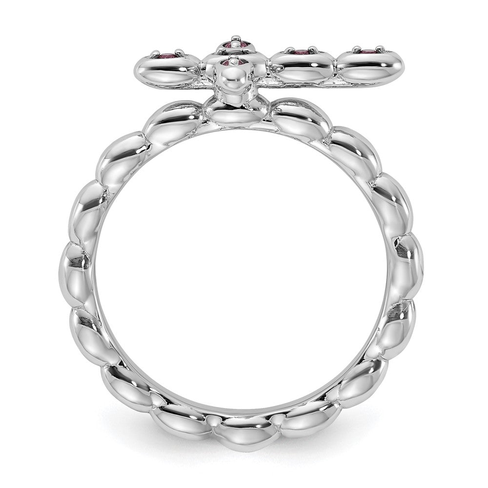 Sterling Silver Stackable Expressions Rhodium-plated Rhodolite Cross Ring