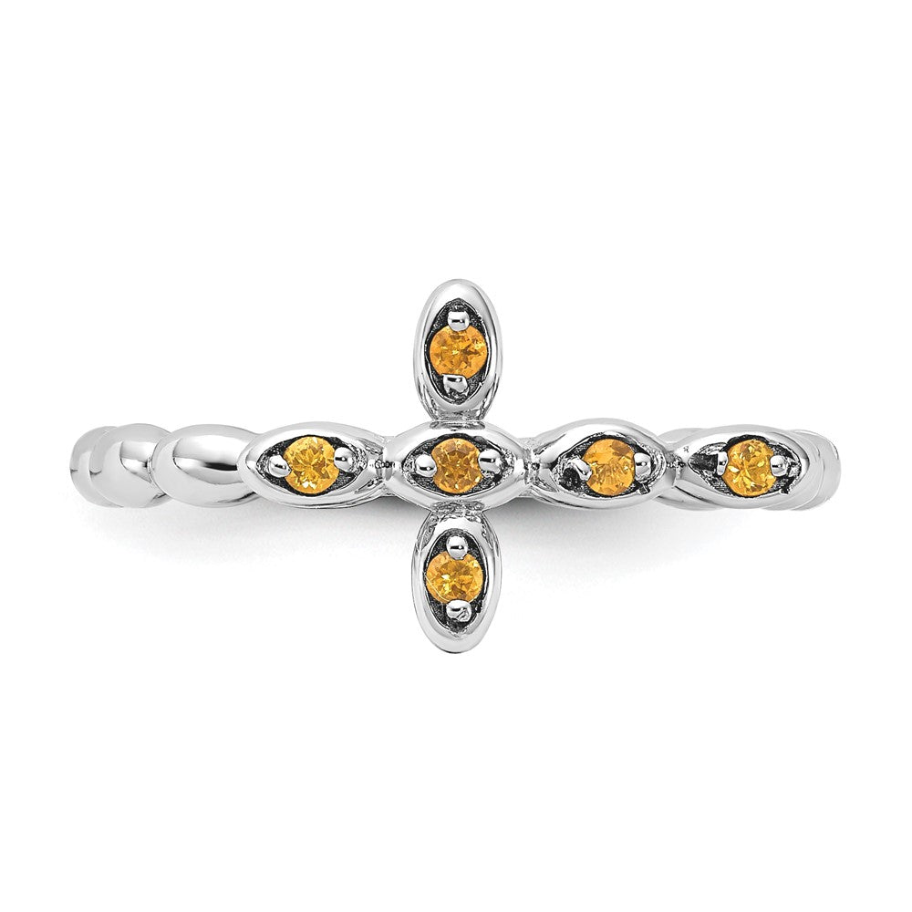 Sterling Silver Stackable Expressions Rhodium-plated Citrine Cross Ring
