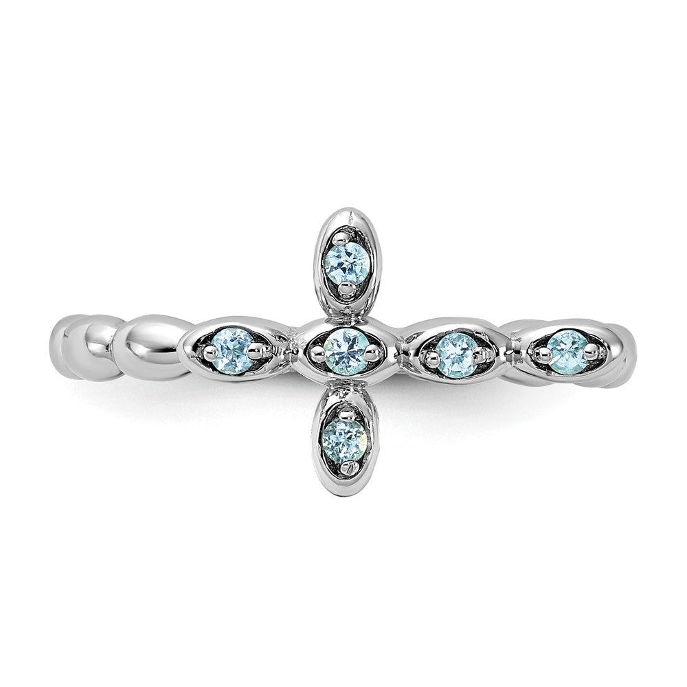 Sterling Silver Stackable Expressions Rhodium-plated Blue Topaz Cross Ring