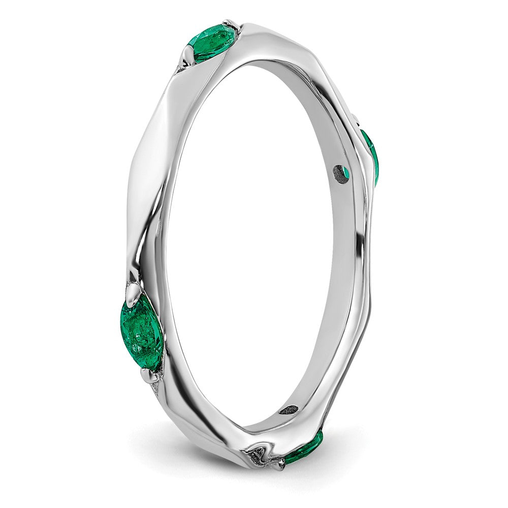 Sterling Silver Stackable Expressions Rhodium-plated Created Emerald Ring