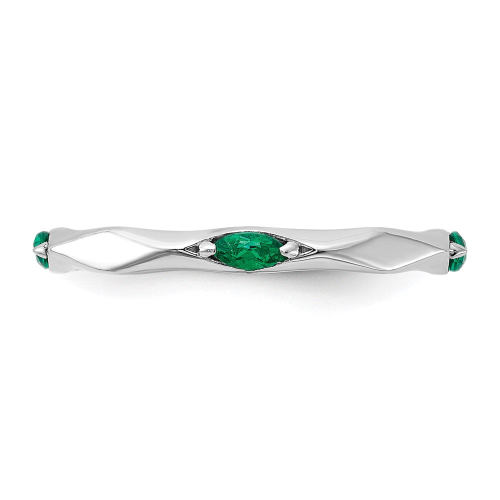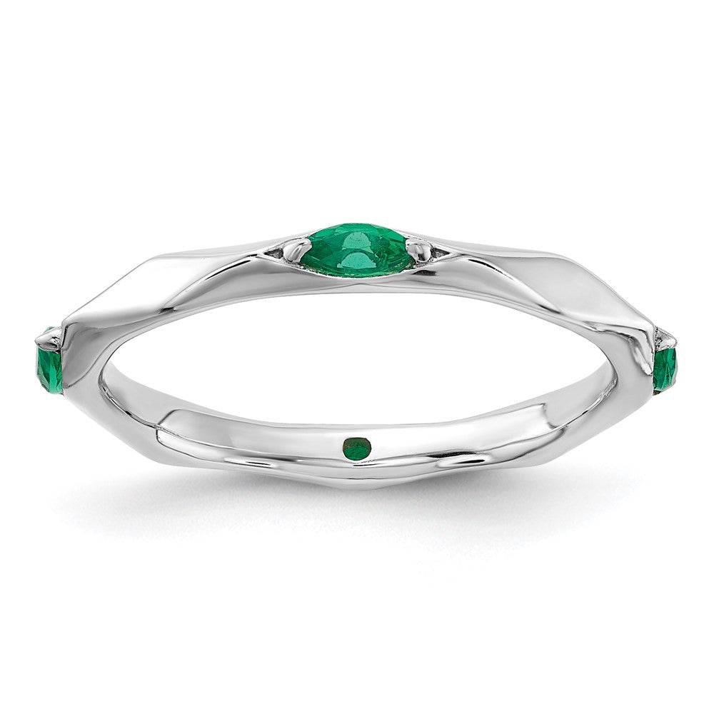 Sterling Silver Stackable Expressions Rhodium-plated Created Emerald Ring