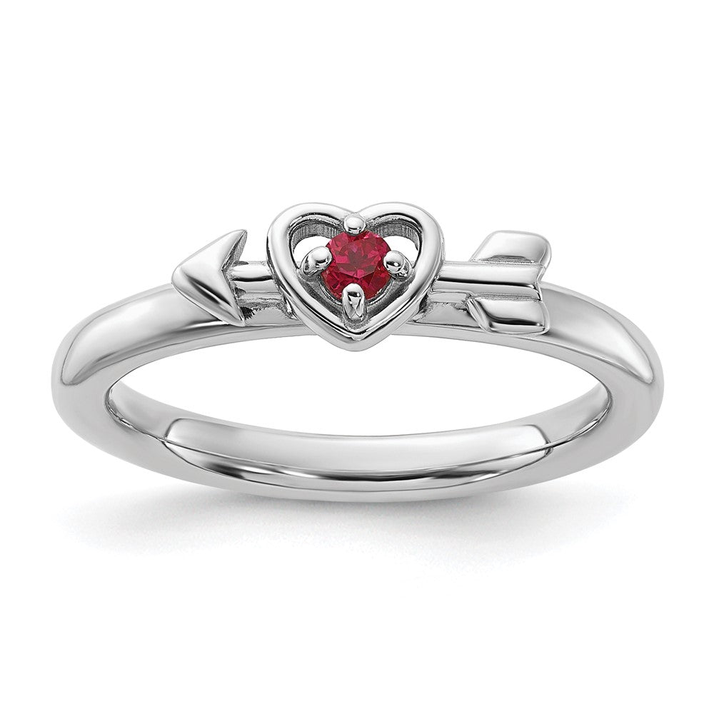 Sterling Silver Stackable Expressions Rhodium-plated Created Ruby Heart with Arrow Ring