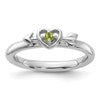 Sterling Silver Stackable Expressions Rhodium-plated Peridot Heart with Arrow Ring