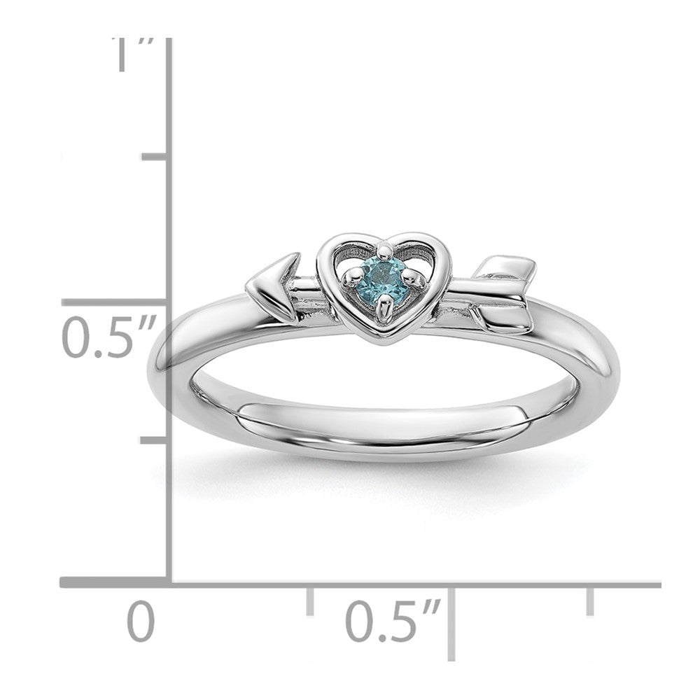 Sterling Silver Stackable Expressions Rhodium-plated Blue Topaz Heart with Arrow Ring
