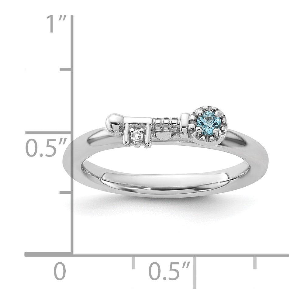 Sterling Silver Stackable Expressions Rhodium-plated Blue and White Topaz Key Ring