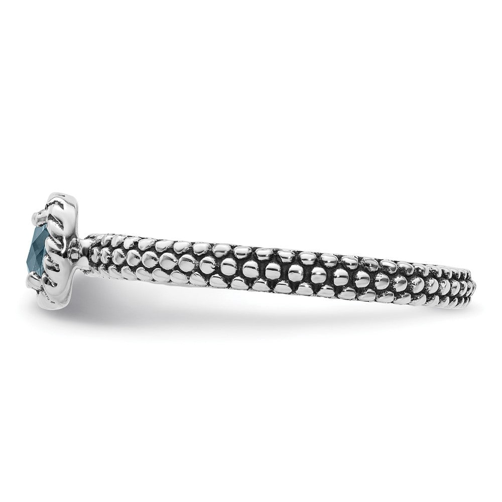 Sterling Silver Stackable Expressions Checker-cut Aquamarine Antiqued Ring
