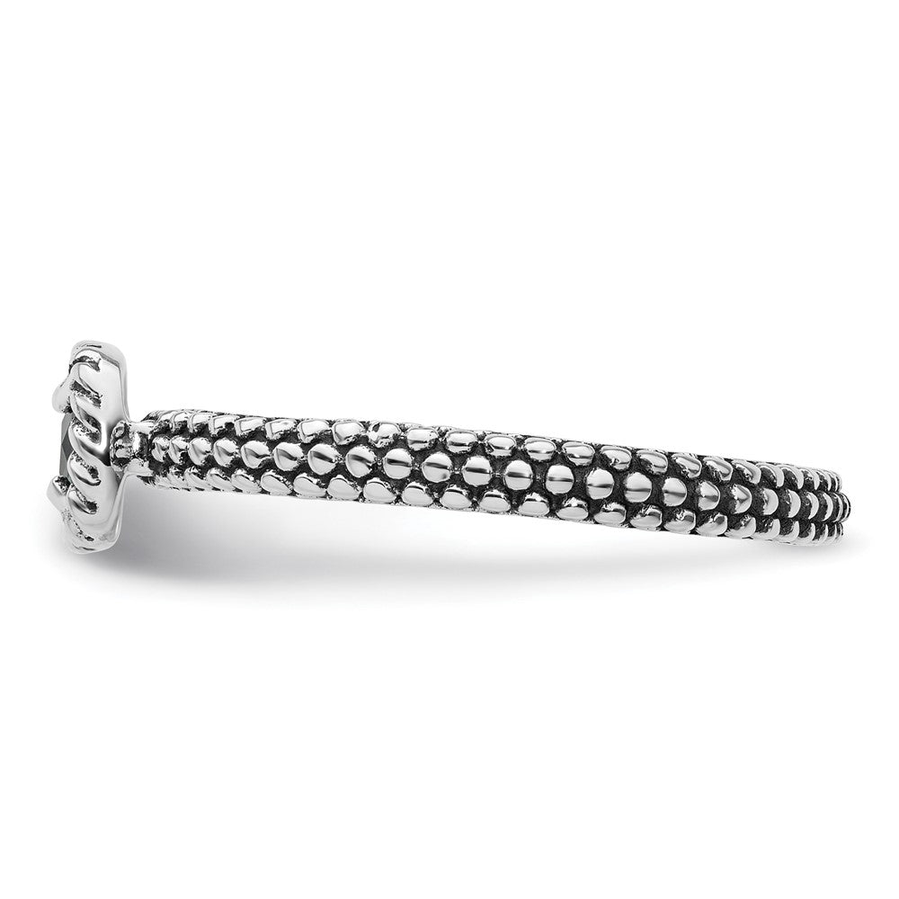 Sterling Silver Stackable Expressions Checker-cut Blue Topaz Antiqued Ring