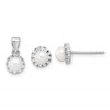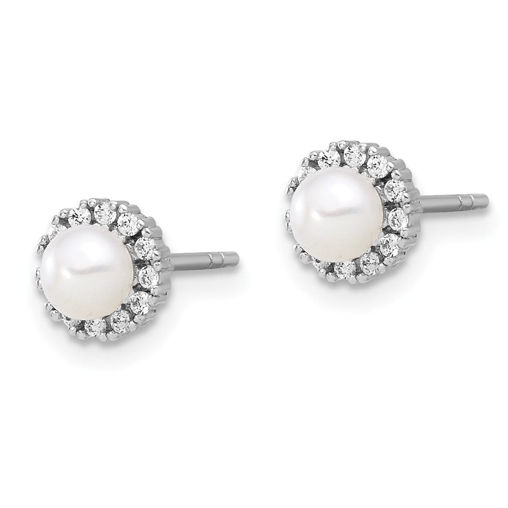 Sterling Silver Rh-plated 4-4.5mm FWC Pearl and CZ Earrings and Pendant Set