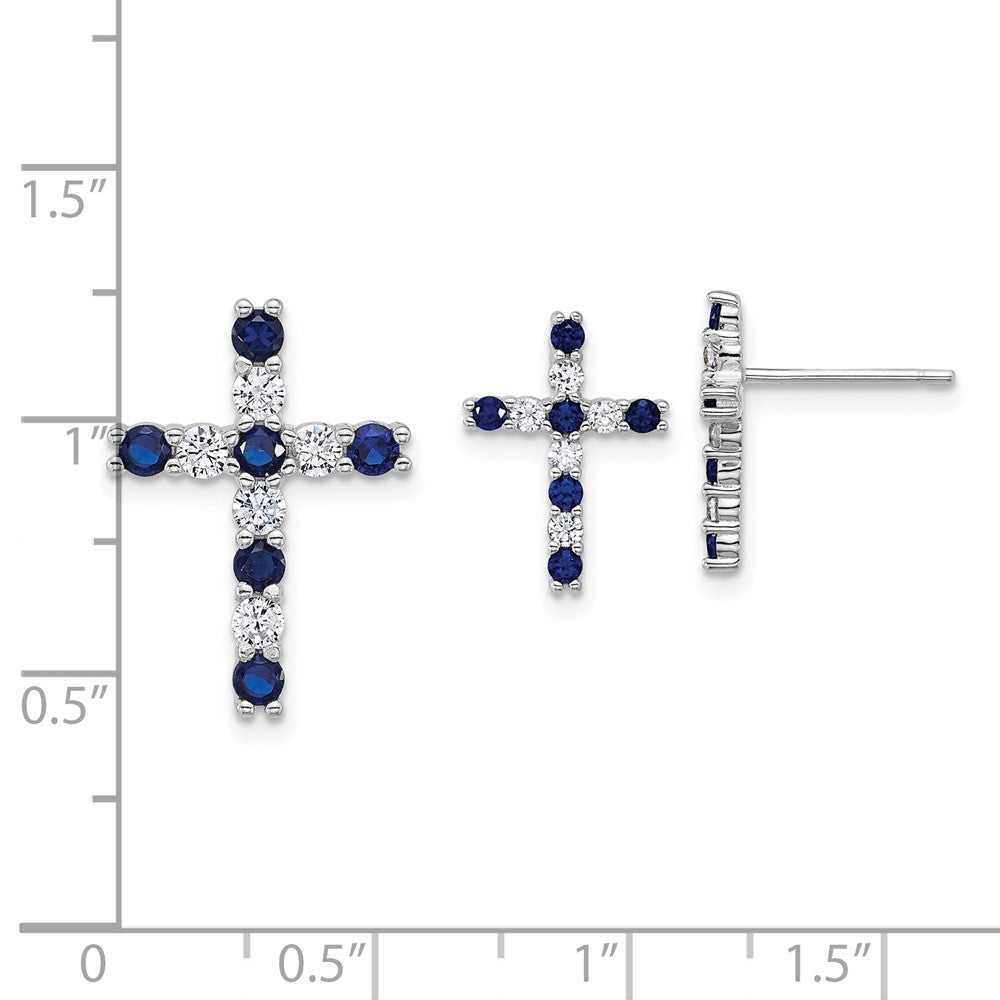 Sterling Silver Rhodium-plated Polished Blue and White CZ Cross Post Earrings and Chain Slide Pendant Set