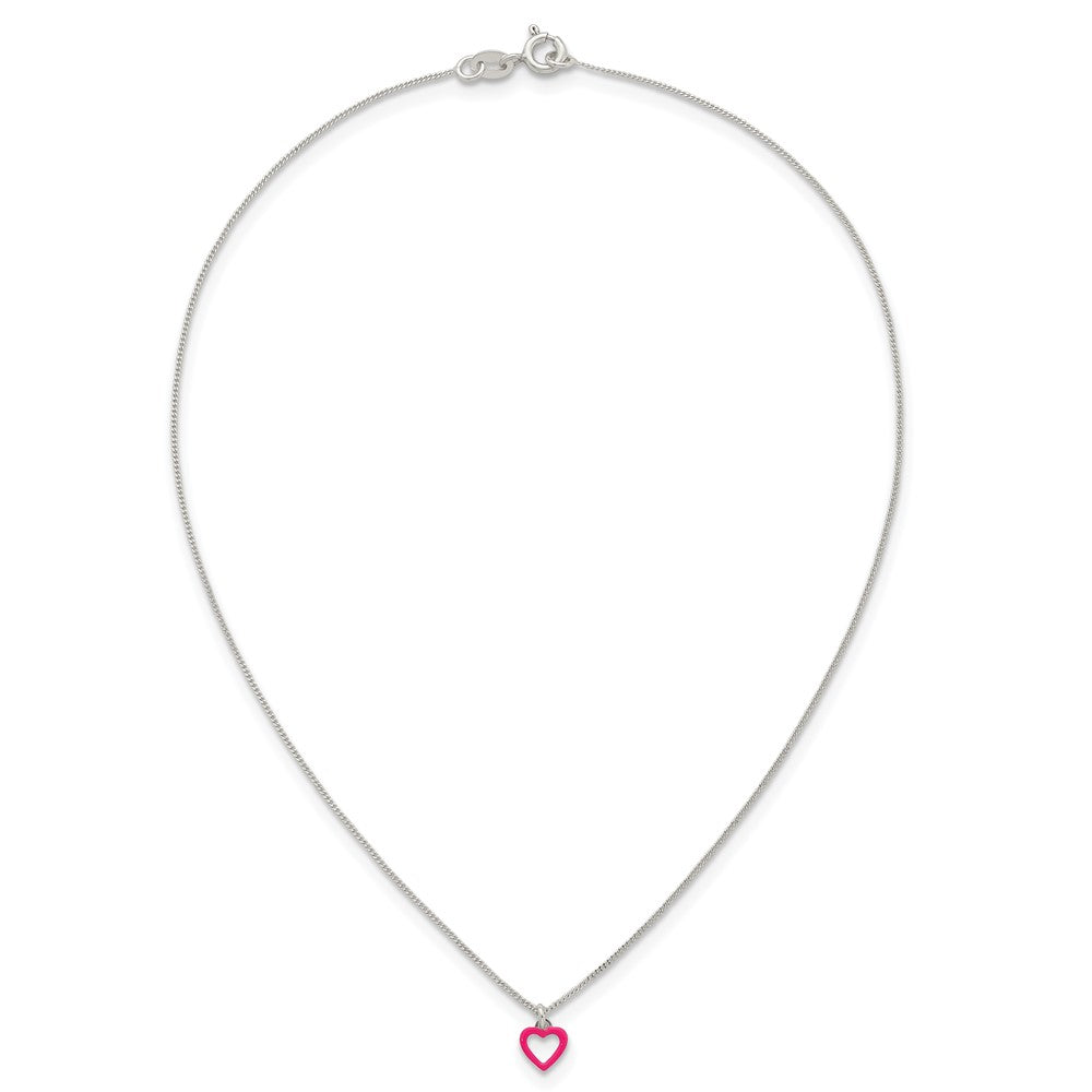 Sterling Silver Polished Pink Enamel Open Heart Childrens 14 inch Necklace and Post Earrings Set
