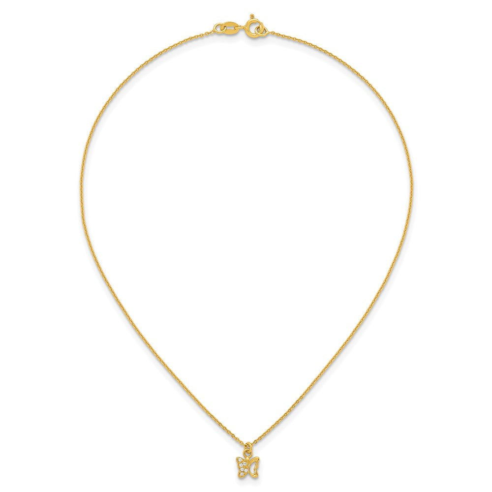 Sterling Silver Gold-tone White CZ Butterfly Childrens 14 inch Necklace and Post Earrings Set