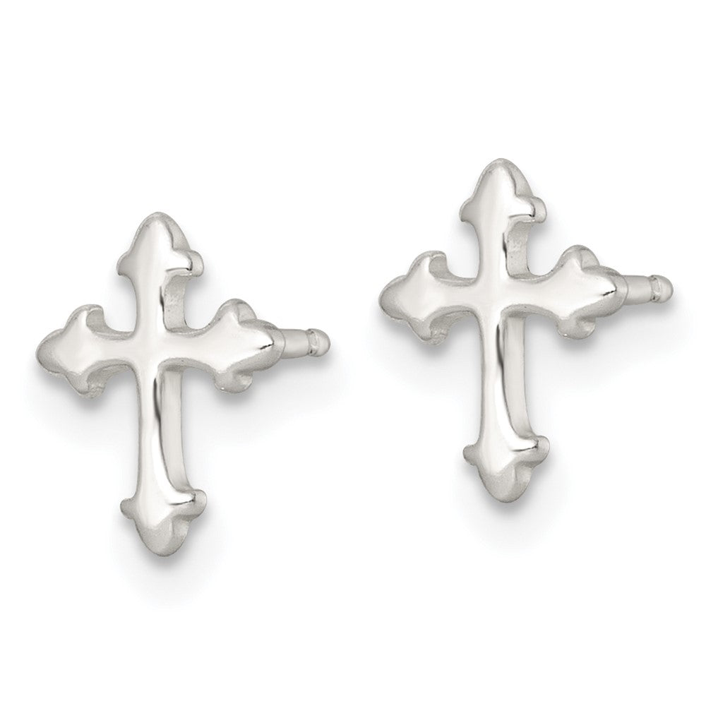 Sterling Silver Polished Cross Childrens 14 inch Necklace and Post Earrings Set