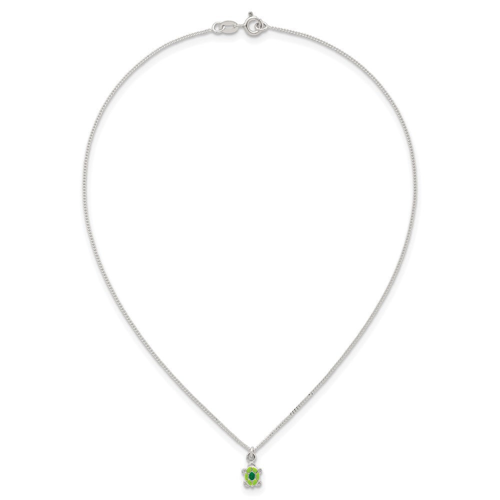 Sterling Silver Polished Green Enameled Turtle Childrens 14 inch Necklace and Post Earrings Set