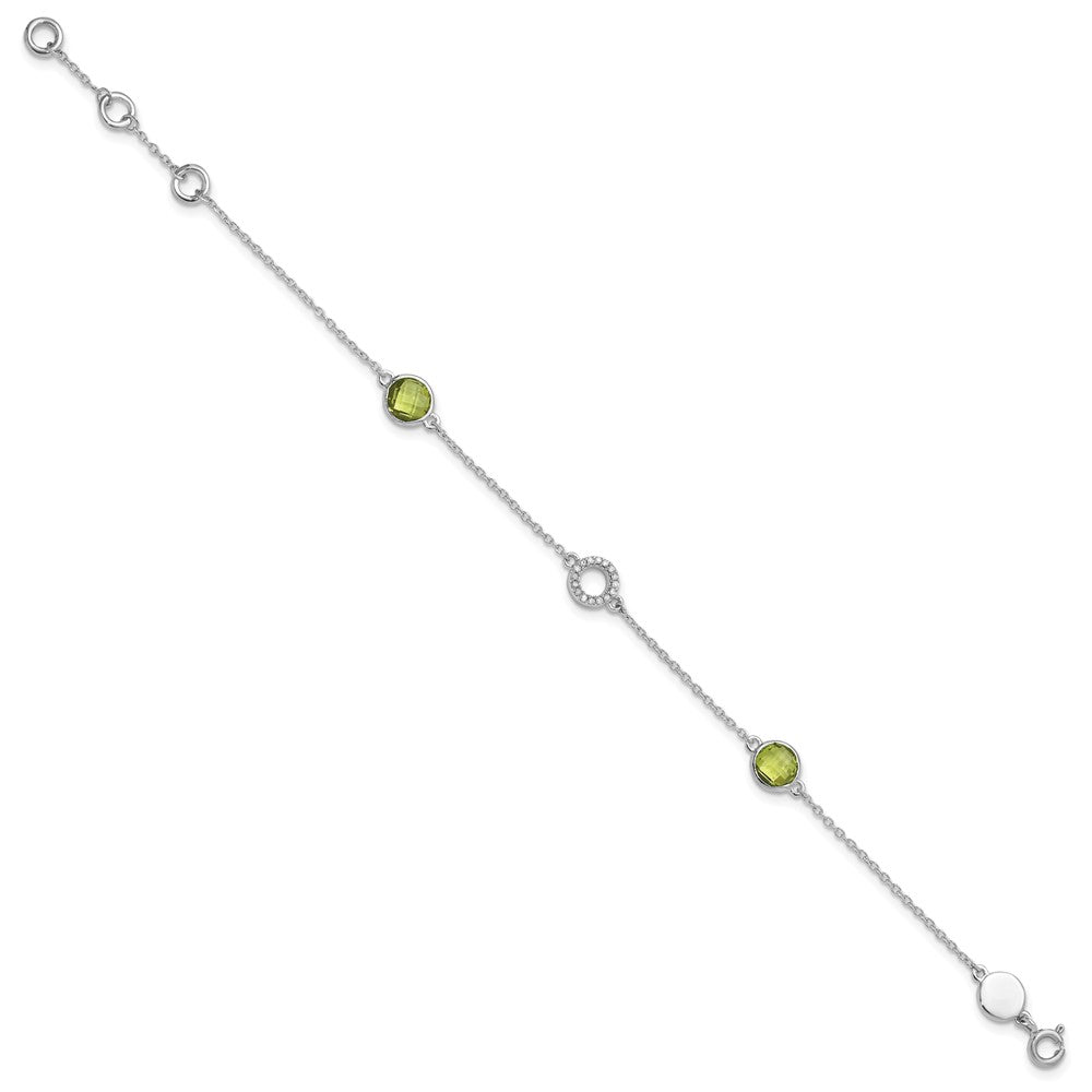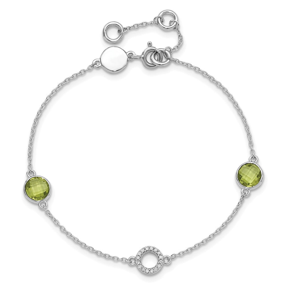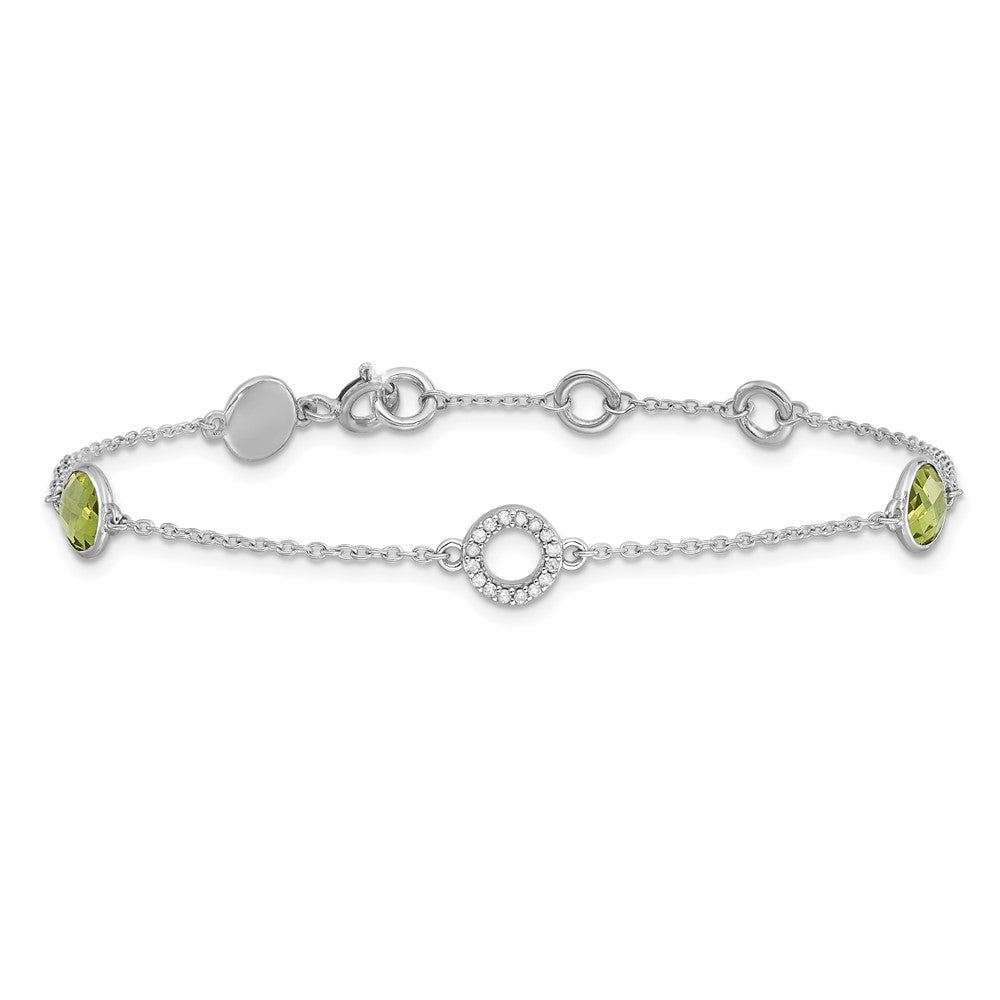 White Ice Sterling Silver Rhodium-plated Diamond and Peridot 6.25 inch Bracelet plus 1 inch Extender