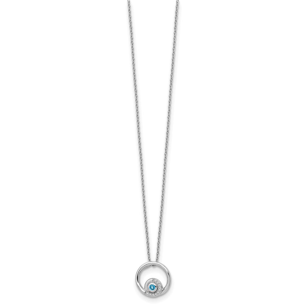 White Ice Sterling Silver Rhodium-plated 18 Inch Blue Topaz and Diamond Necklace with 2 Inch Extender