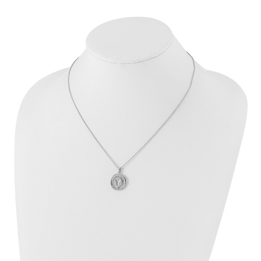 White Ice Sterling Silver Rhodium-plated 18 Inch Diamond Letter Y Initial Necklace with 2 Inch Extender