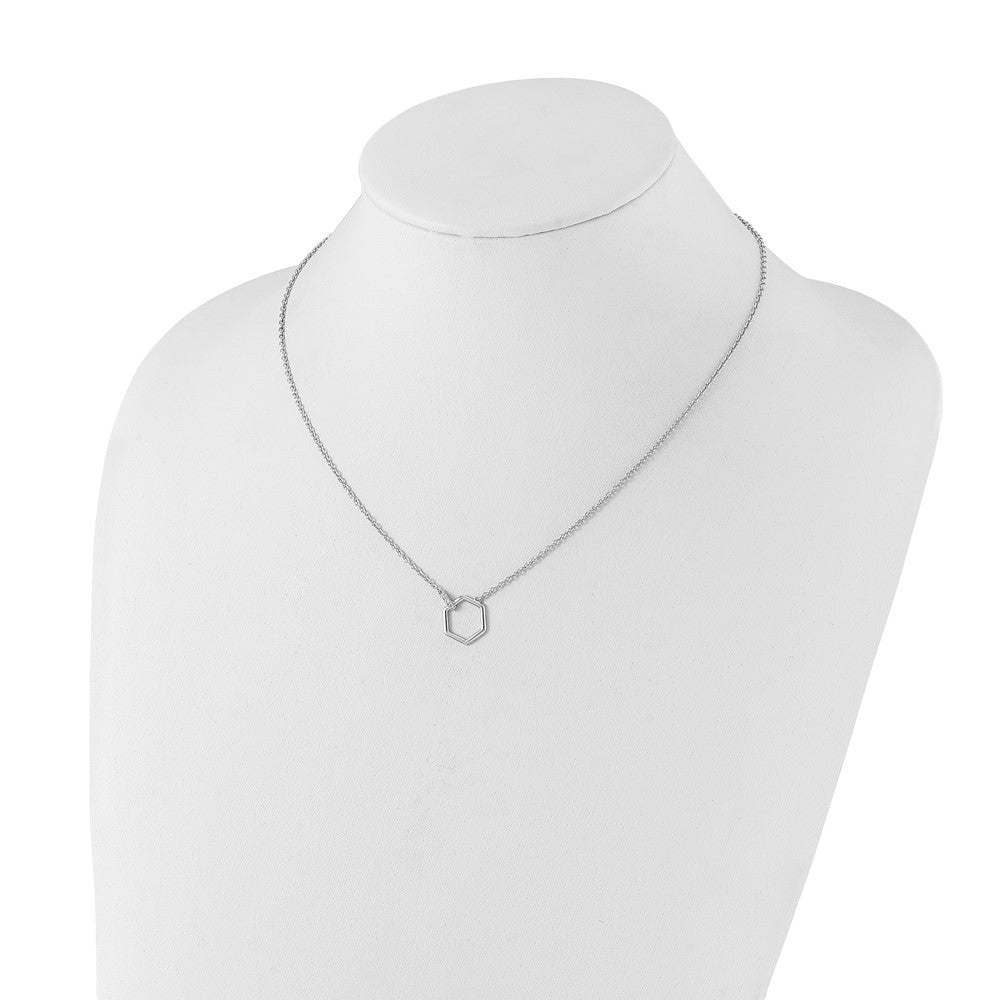 White Ice Sterling Silver Rhodium-plated 18 Inch Diamond Hexagon Necklace