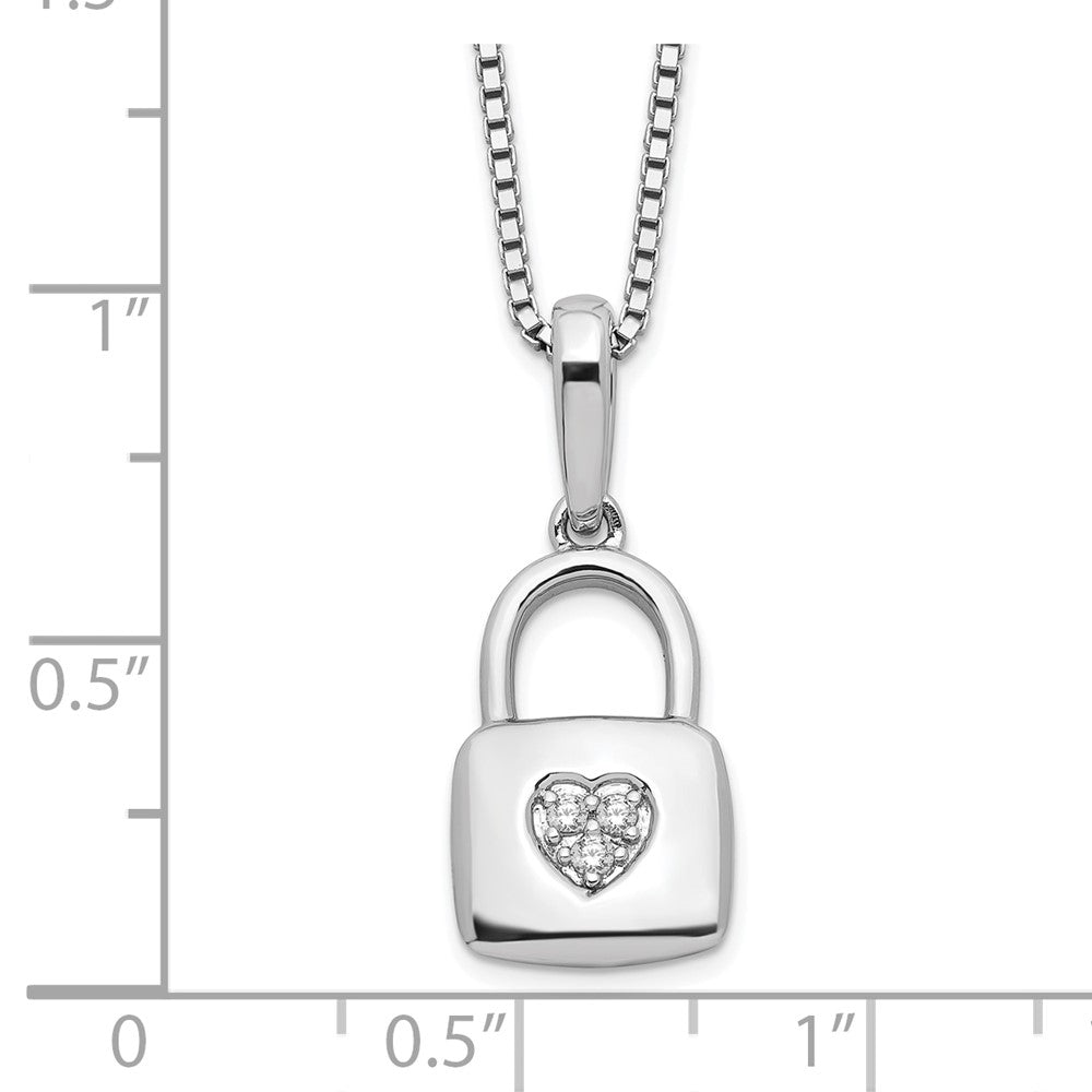 White Ice Sterling Silver Rhodium-plated 18 Inch Diamond Heart Lock Necklace with 2 Inch Extender