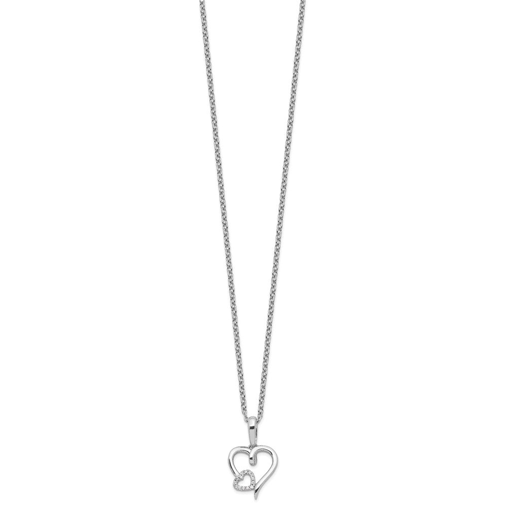 White Ice Sterling Silver Rhodium-plated 18 Inch Diamond Hearts Necklace with 2 Inch Extender