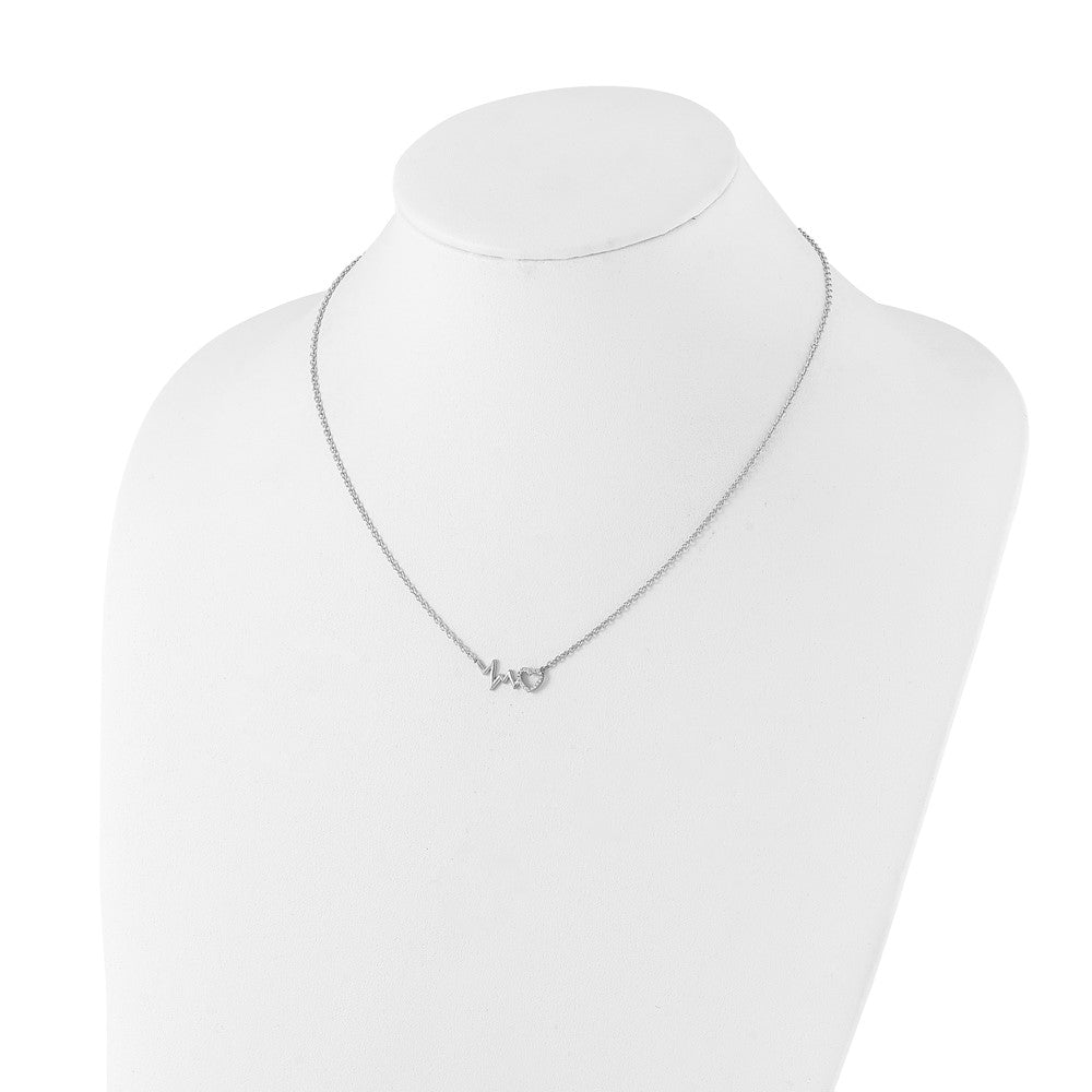 White Ice Sterling Silver Rhodium-plated 18 Inch Diamond Heart with Heartbeat Necklace