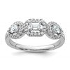 14k White Gold 5/8 carat Lab Grown Diamond VS/SI+ G+ Three Stone Emerald and Pear Complete Engagement Ring