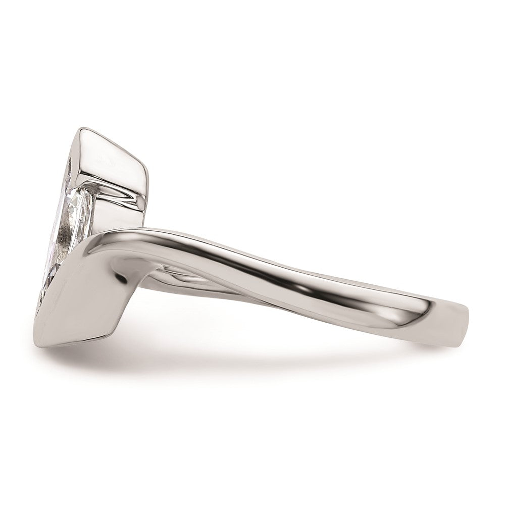 14k White Gold (Holds 3/4 carat (9.5x4.8mm) Marquise) Half-Bezel Bypass Solitaire Engagement Ring Mounting