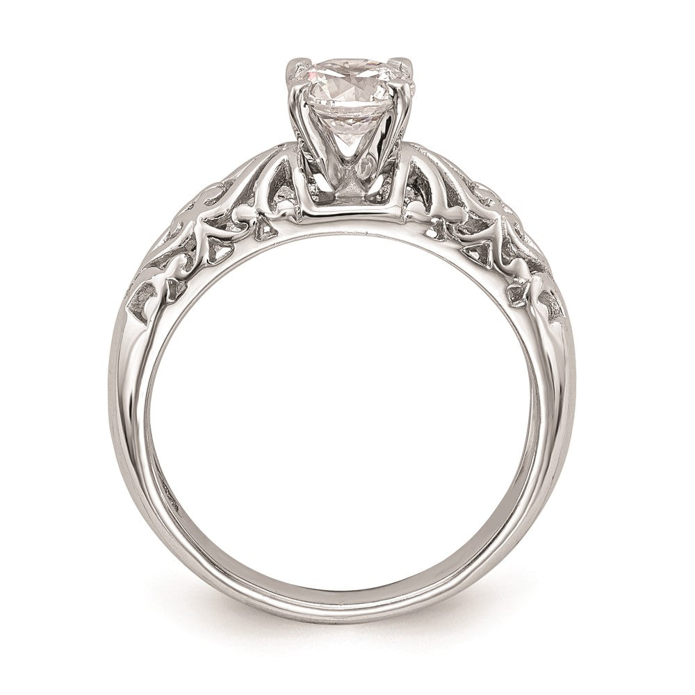 14k White Gold Peg Set Filigree Heart Design Solitaire Engagement Ring Mounting
