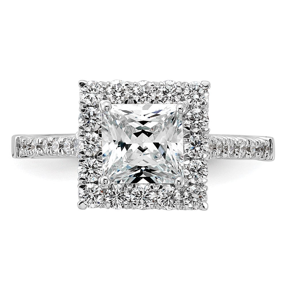 14k White Gold 3/4 carat Lab Grown Diamond VS/SI+ G+ 1 1/2 carat Center Princess Semi Mount Halo Engagement Ring