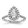 14k White Gold 3/8 carat Lab Grown Diamond VS/SI+ G+ 1 carat Center Pear Semi Mount Halo Engagement Ring