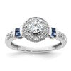 14K White Gold Halo Plus (Holds 3/8 carat (4.5mm) Round Center) 1/5 carat Diamond and Sapphire Semi-Mount Engagement Ring