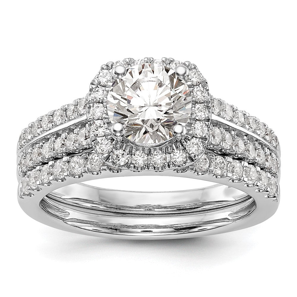 14K White Gold Halo Plus (Holds 1 carat (6.5mm) Round Center) 1/2 carat Diamond Semi-Mount Engagement Ring