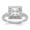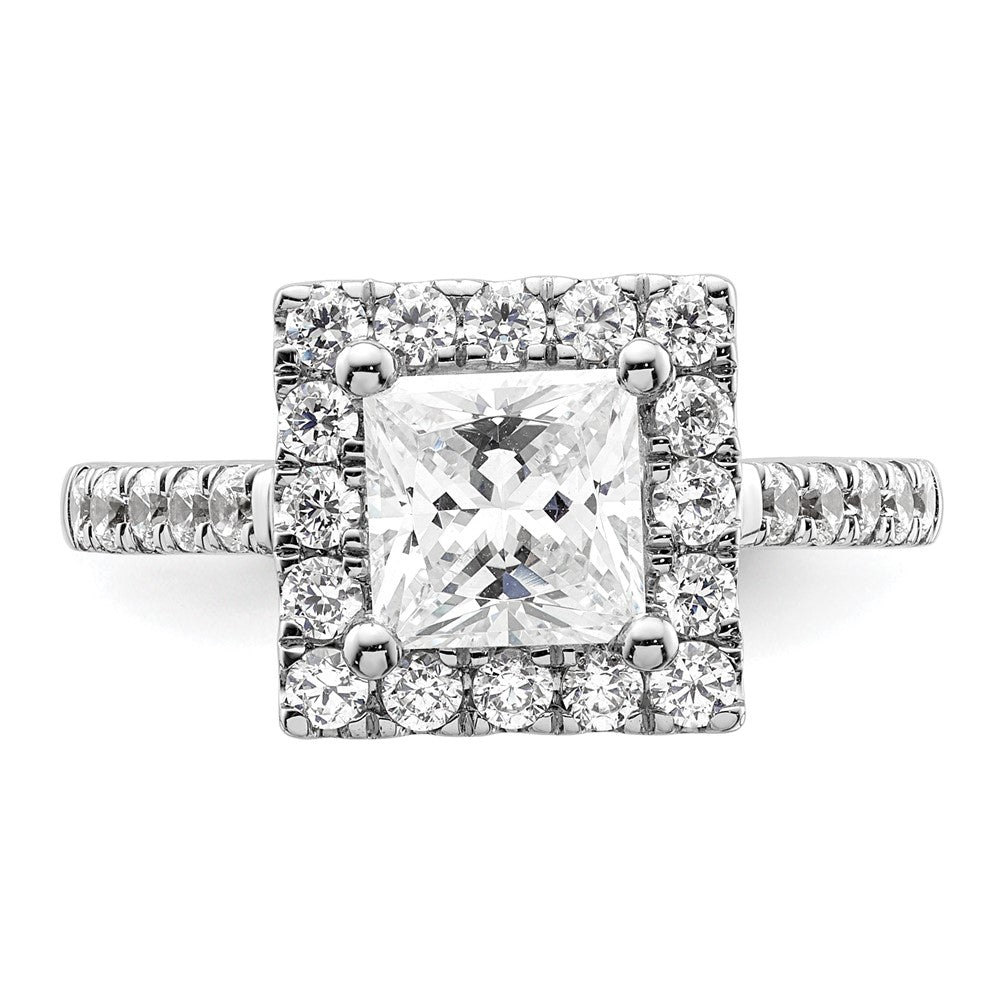 14K White Gold Halo Plus (Holds 1.5 carat (6.3mm) Princess Center) 3/4 carat Diamond Semi-Mount Engagement Ring
