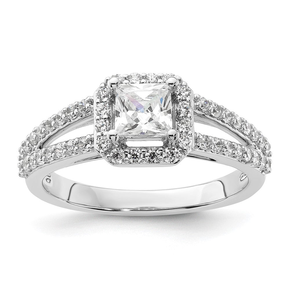 14K White Gold Halo Plus (Holds 1/2 carat (4.5mm) Princess Center) 1/2 carat Diamond Semi-Mount Engagement Ring