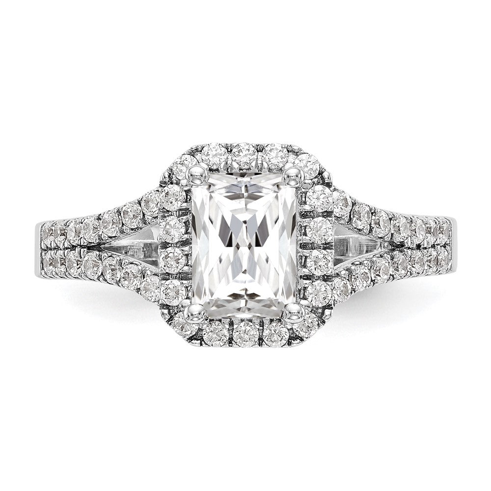 14K White Gold Halo Plus (Holds 1 carat (7.7x5.8mm) Emerald-cut Center) 1/2 carat Diamond Semi-Mount Engagement Ring