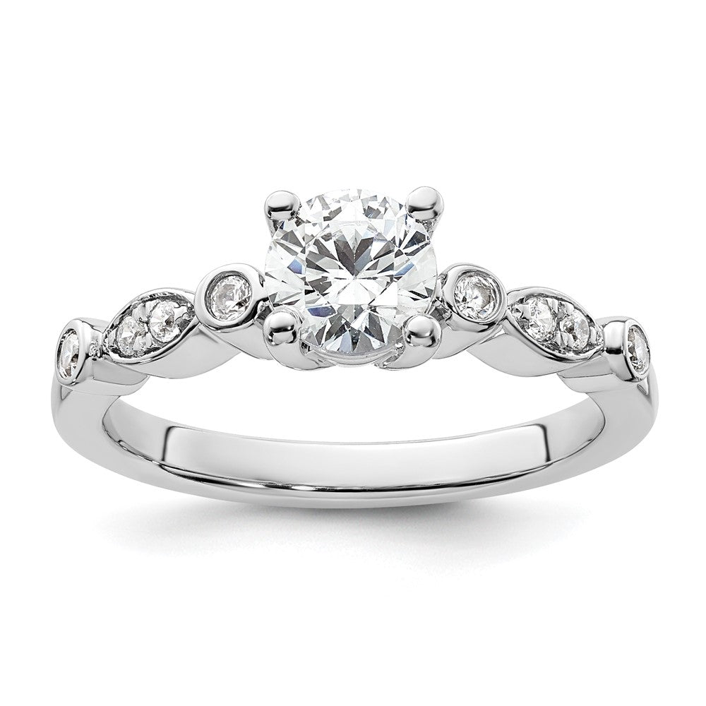 14K White Gold (Holds 3/4 carat (5.8mm) Round Center) 1/8 carat Diamond Semi-Mount Engagement Ring