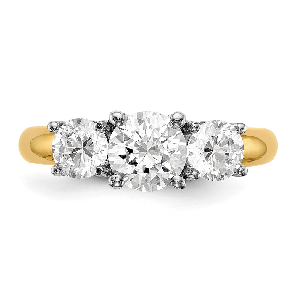 14k Two-tone Three Stone 1 carat Center Round and 1/2 carat Side Stone Engagement Ring Mounting