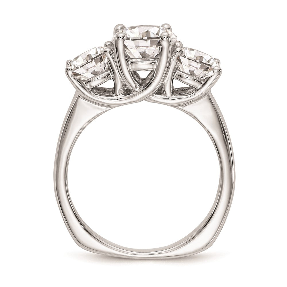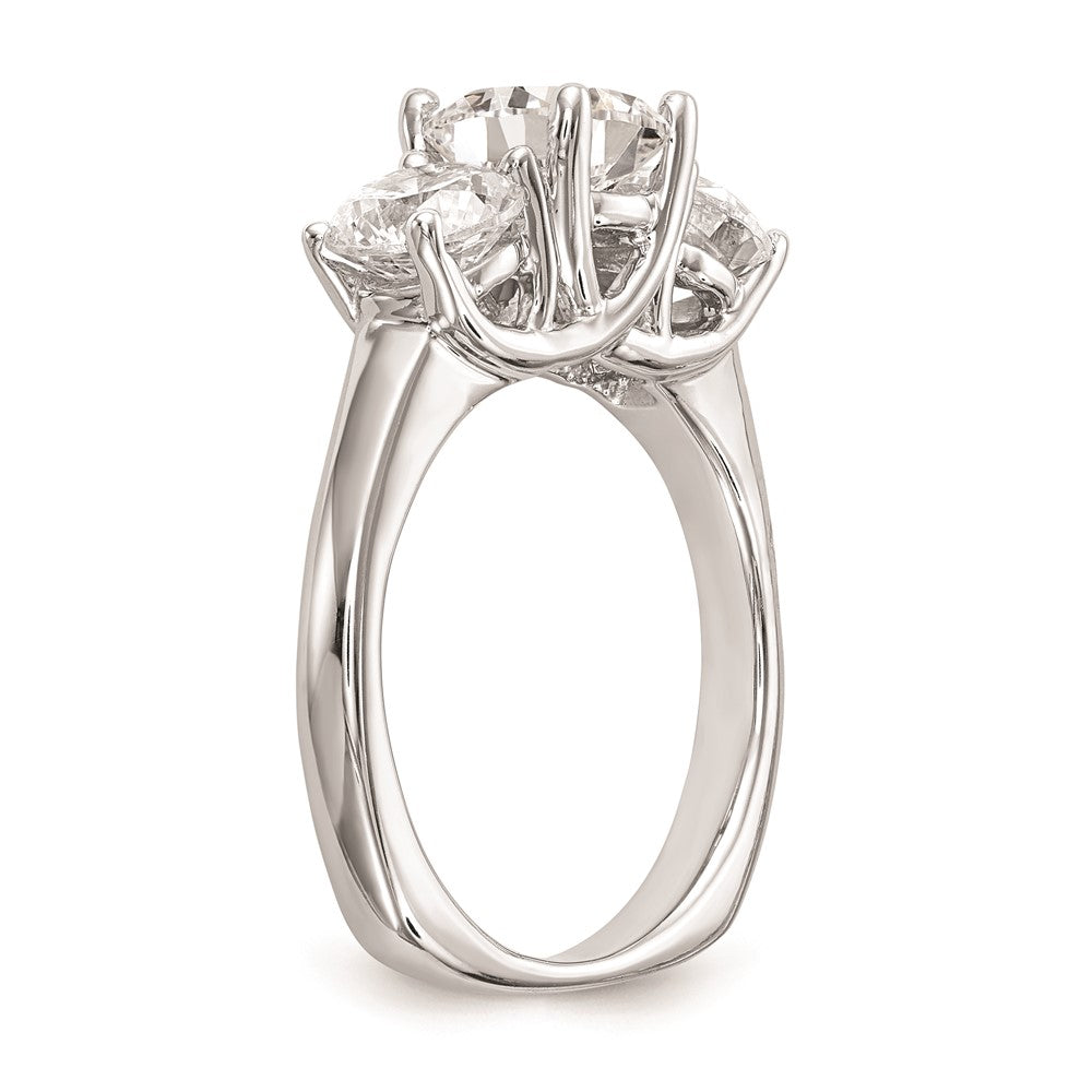 14K White Gold 3-Stone (Holds 1 carat (6.5mm) Round Center and (2-5.00mm) Round Sides) Engagement Ring Mounting