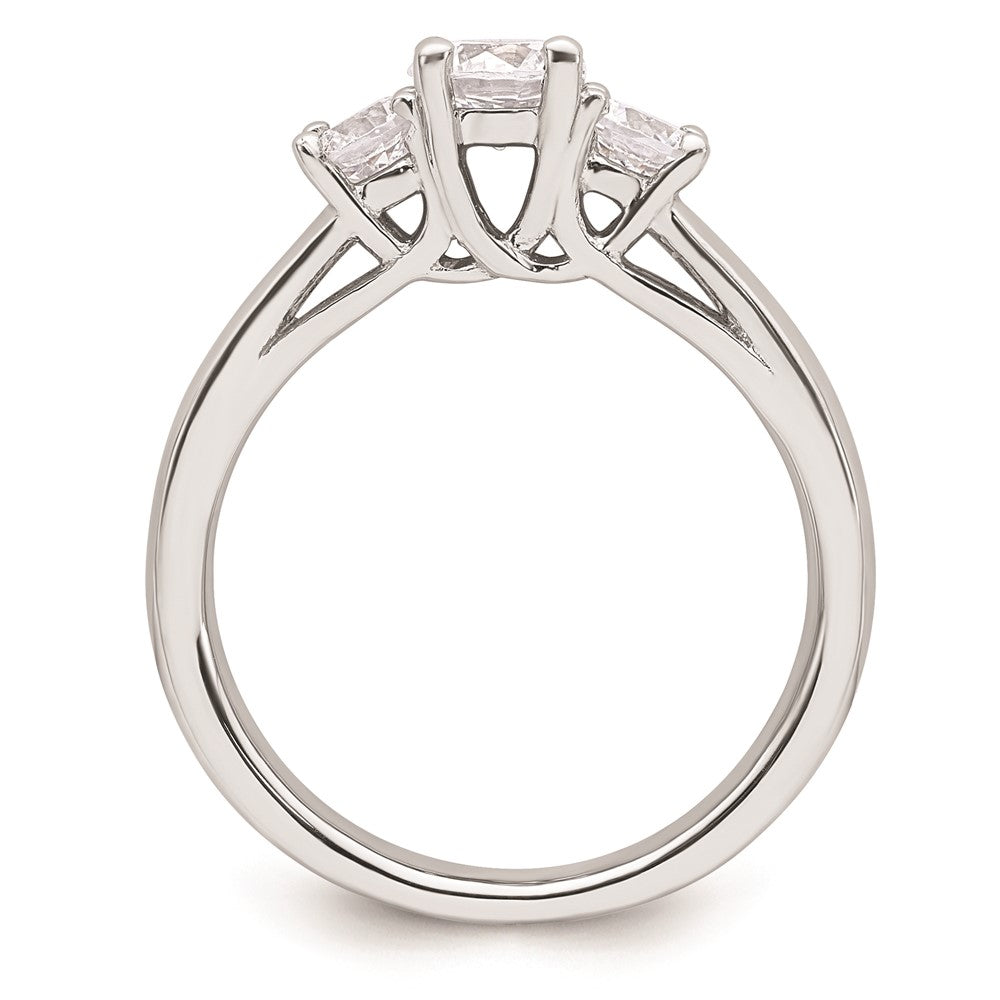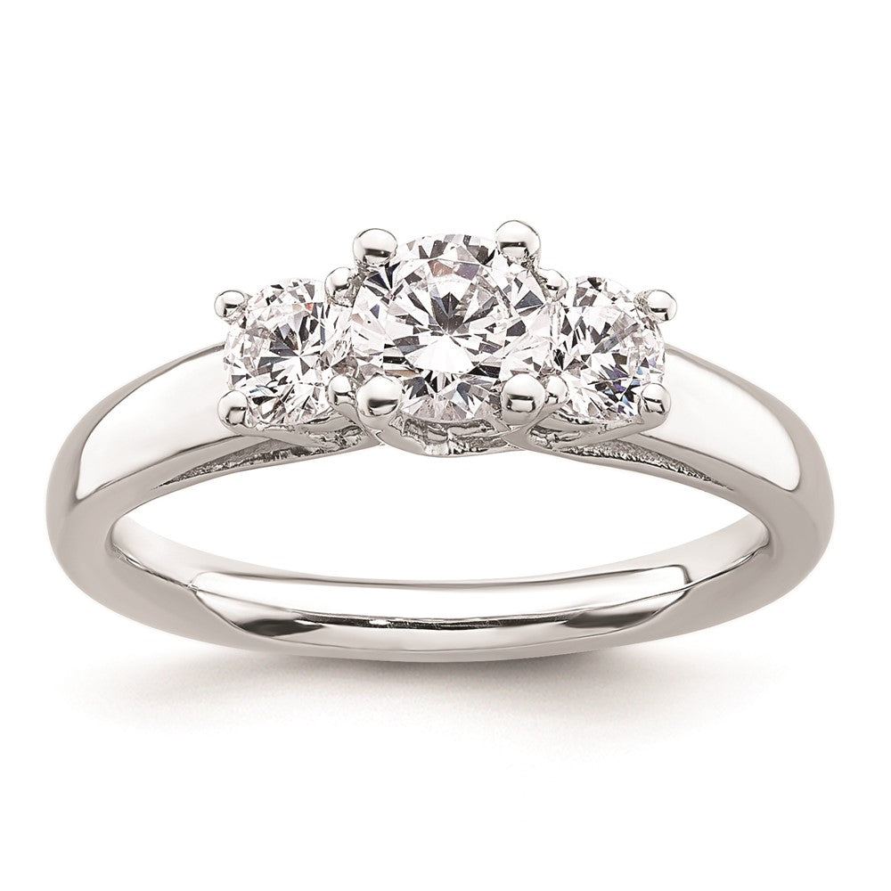 14K White Gold 3-Stone (Holds 1/2 carat (5.2mm) Round Center and (2-4.1mm) Round Sides) Engagement Ring Mounting