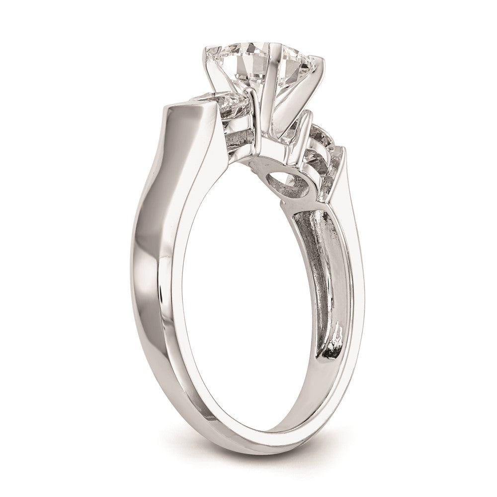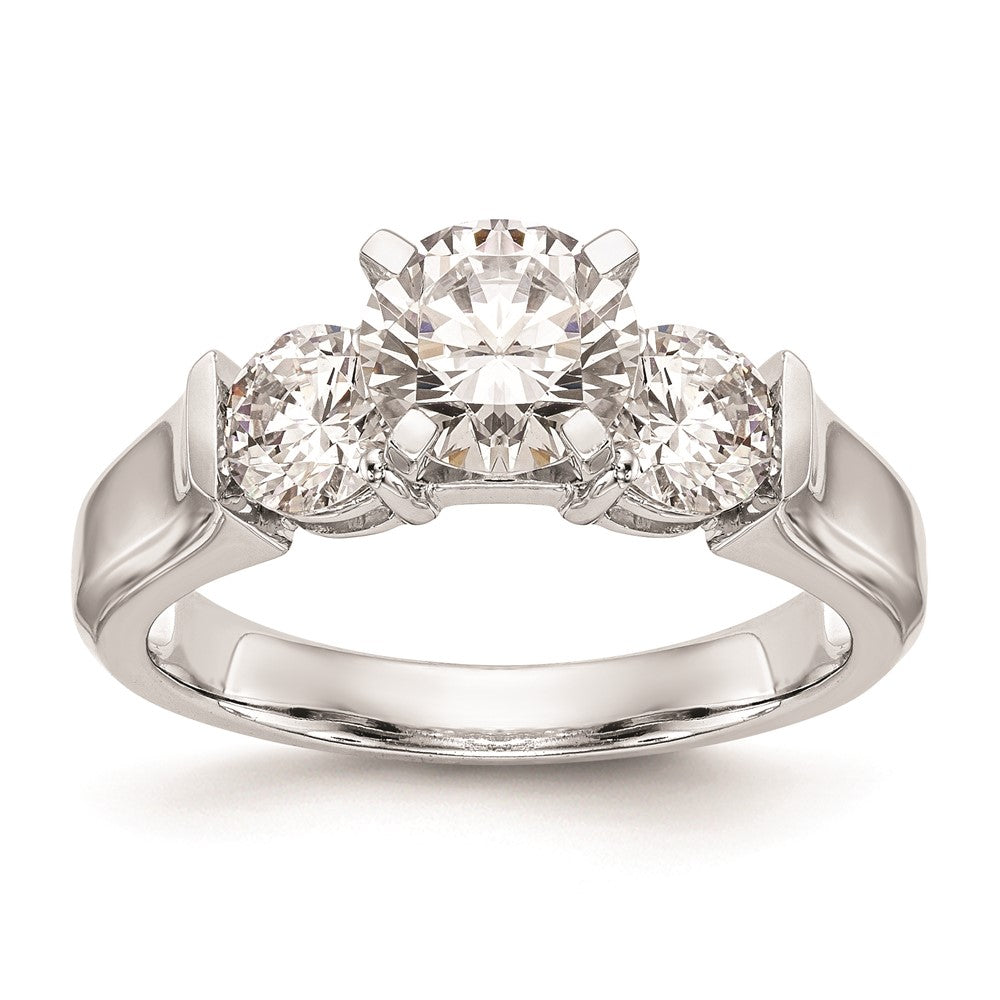 14K White Gold 3-Stone (Holds 1 carat (6.5mm) Round Center and (2-4.6mm) Round Sides) Engagement Ring Mounting