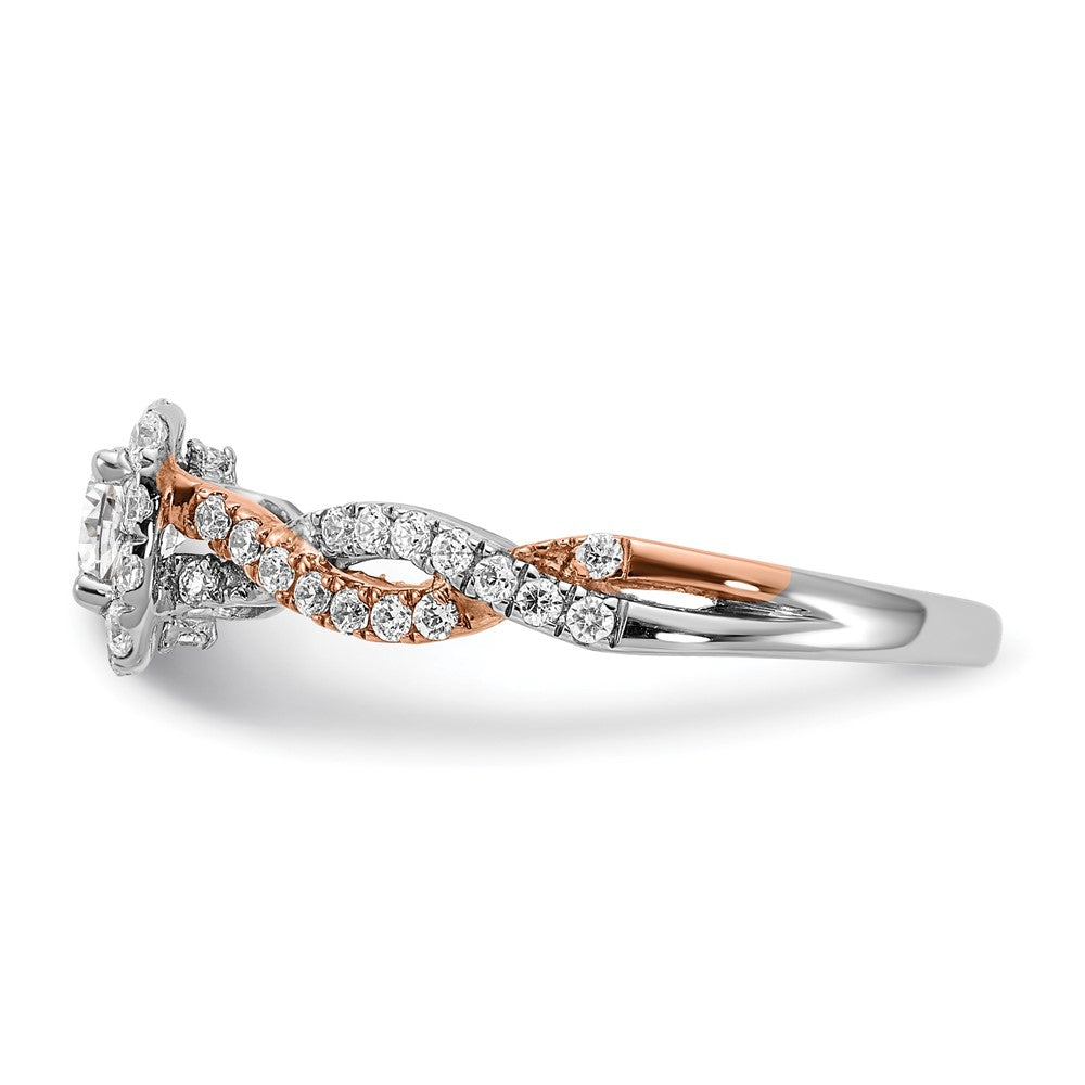 14K Two-Tone Lab Grown VS/SI+ G+ Dia Complete Square Halo Eng Ring