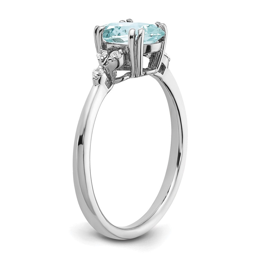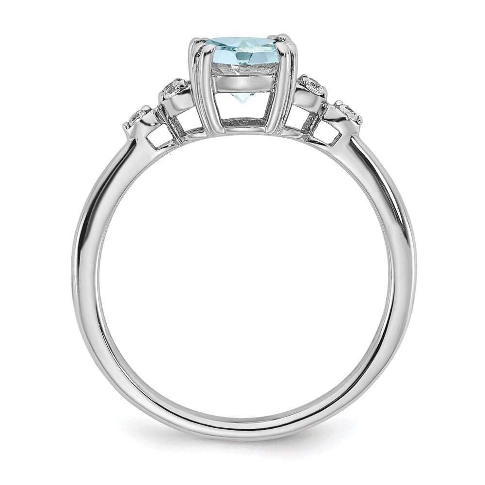 Sterling Silver Rhodium-plated Aquamarine and Diamond Ring
