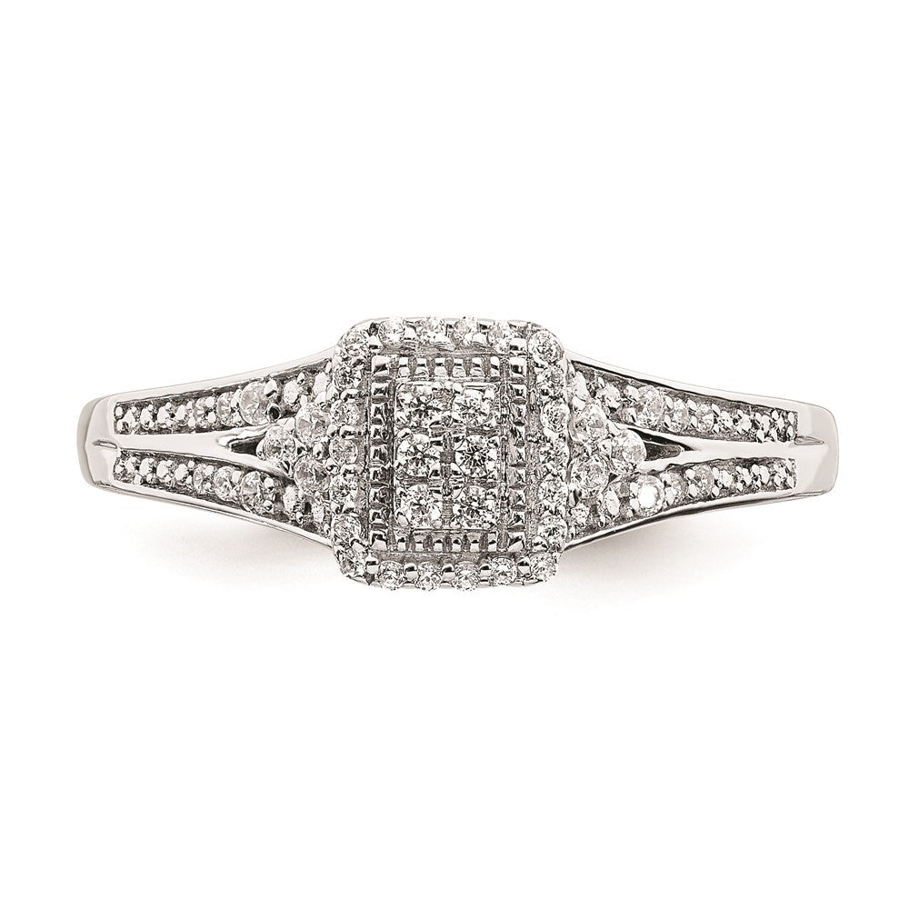 10k White Gold Rectangular Halo Cluster 1/5 carat Diamond Complete Engagement Ring